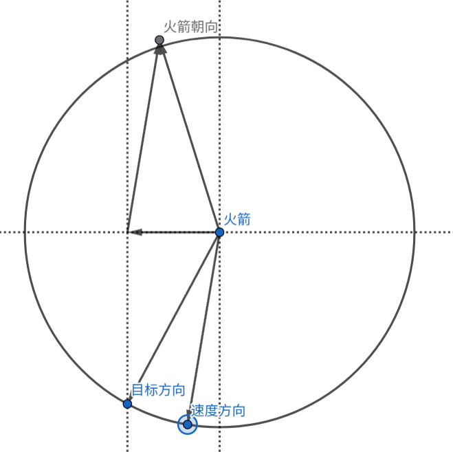 为了简化教程,教程将火箭和目标,速度,方向控制都视在同一平面内(只是为了方便讲解,实际不影响)。