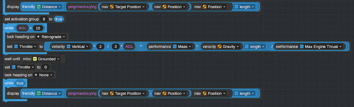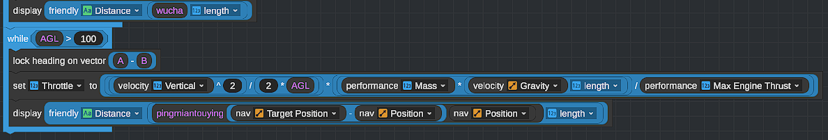用系统自带的高度会有一个问题,目标高度并不是0高度,也就是火箭与目标的高度差并不是Vizzy自带的AGL