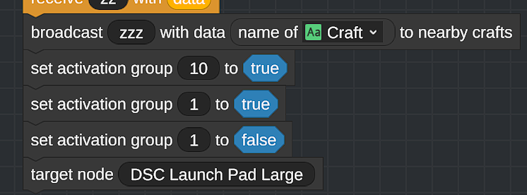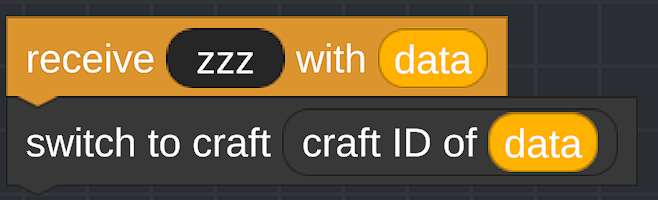 回到飞船控制器中加入上图程序,接受火箭一级发出的广播,将一级的名称转换为ID再切换控制
