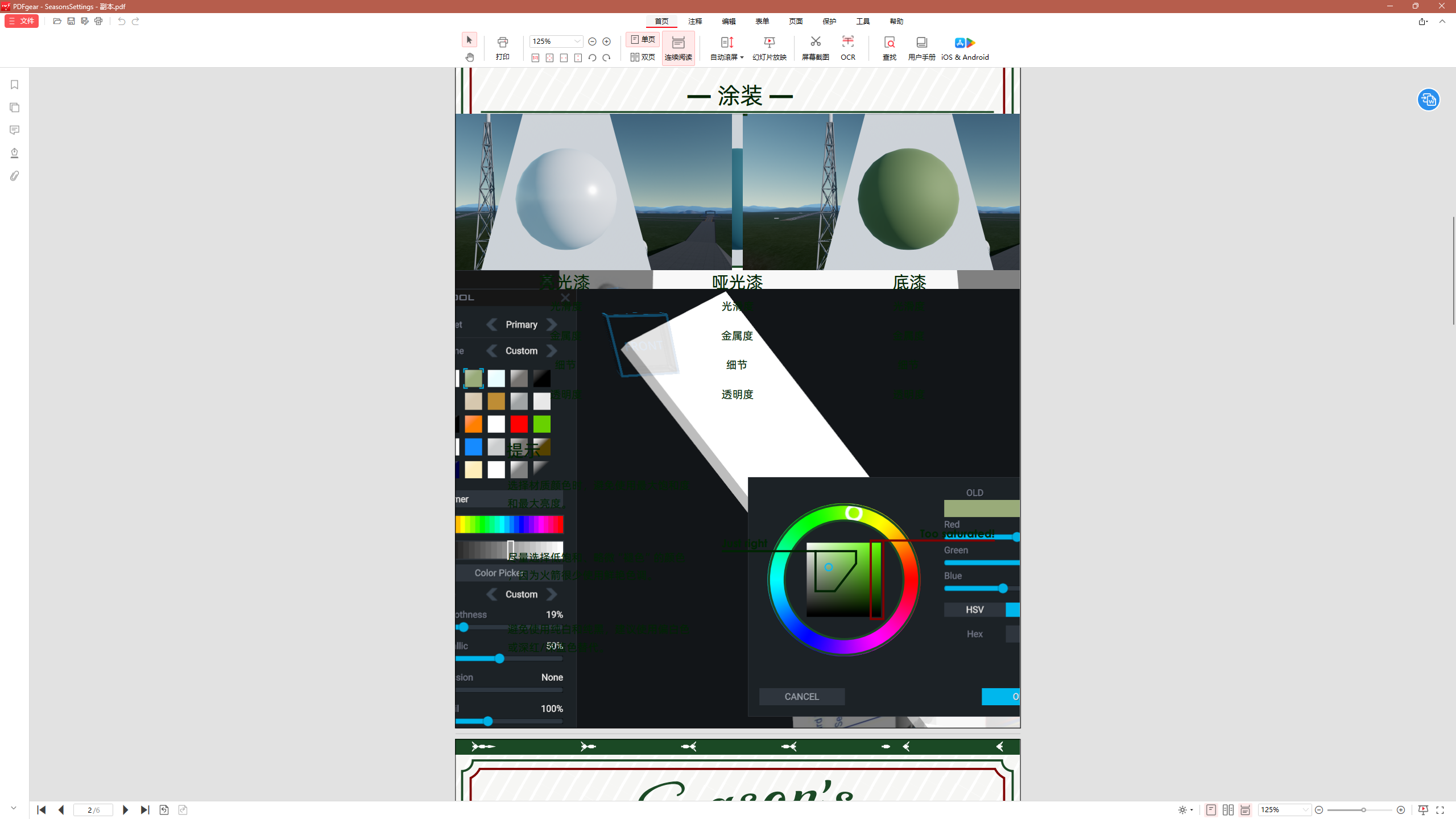 这些我们看到的图例,其实都是游戏内的完整截图,然后使用模板之类的工具将部分内容遮住了,一旦进行文字编辑,就会恢复到原本情况。而这个问题在我用夸克进行编辑的时候没有出现,在我基本汉化完进行保存的时候,所有图片都变了,离了个大谱。最后发现还是Adobe Acrobat好用,用这个我就正常修改好了。